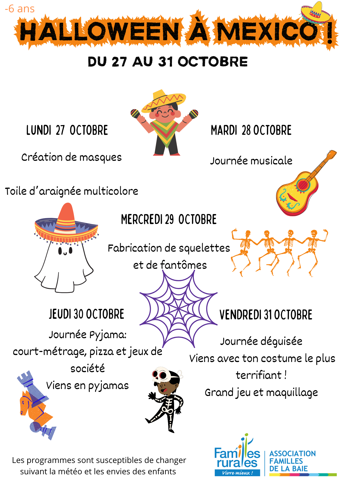 Programme des vacances d'automne chez les - 6 ans