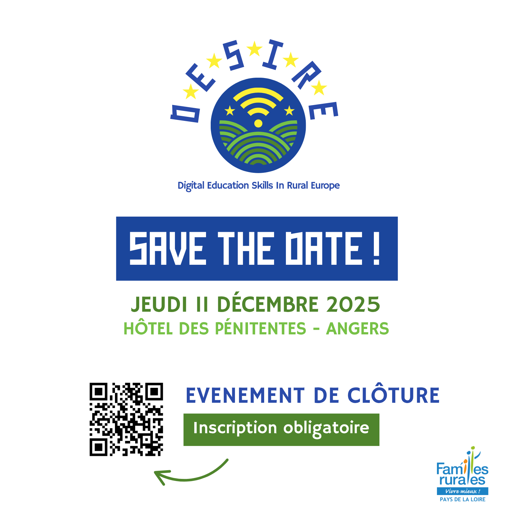 Le samedi 15 novembre, la Fédération Régionale, en partenariat avec l’Association Familles Rurales d’Erdre-en-Anjou et la Maison de l’Europe d’Angers, organisera un événement de présentation du volontariat européen. L’objectif est de se rapprocher des jeunes des milieux ruraux pour leur faire découvrir le dispositif, leur donner un accès égal à l’information et les encourager, par la suite, à s’engager dans une mission de volontariat européen.