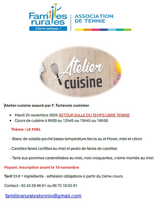 Atelier cuisine Publié par l'association TENNIE le 16 novembre 2025 Partager Actualités Pays-de-la-Loire : 4 Solutions pour financer ma Formation ! Lire + Partager