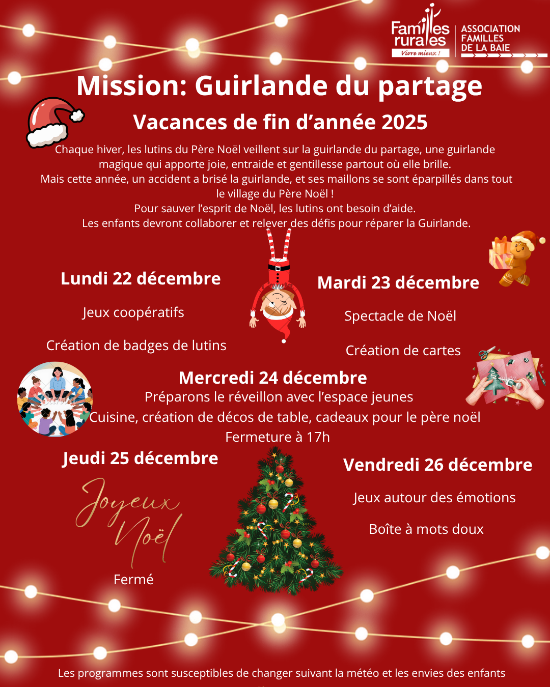 Programme des vacances de fin d'année 2025 à l'accueil de loisirs
