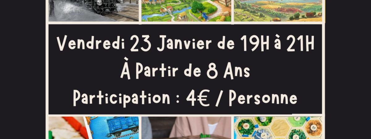SOIRÉE FAMILLE – JEUX DE PLACEMENT 🏰🚂🌾 Envie d’un moment convivial en famille ou entre amis ? Venez vous affronter lors d’une soirée jeux de placement autour de grands classiques : 👉 Carcassonne 👉 Catan 👉 Les Aventuriers du Rail Affrontez-vous, étendez votre influence et partez à la conquête du territoire ! Stratégie, anticipation et audace seront vos meilleures alliées pour décrocher la victoire 🏆 📅 Vendredi 23 janvier 🕖 De 19h à 21h 👧 À partir de 8 ans 💶 Participation : 4 € / personne 📞 Inscription au 02 33 57 16 81 👉 Une soirée ludique, accessible et pleine de rebondissements… alors, qui sera le meilleur stratège ?