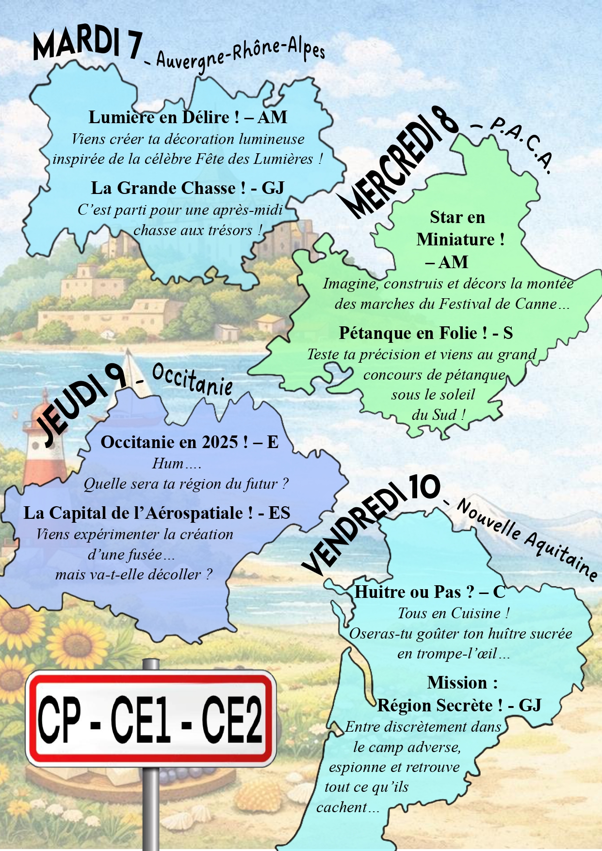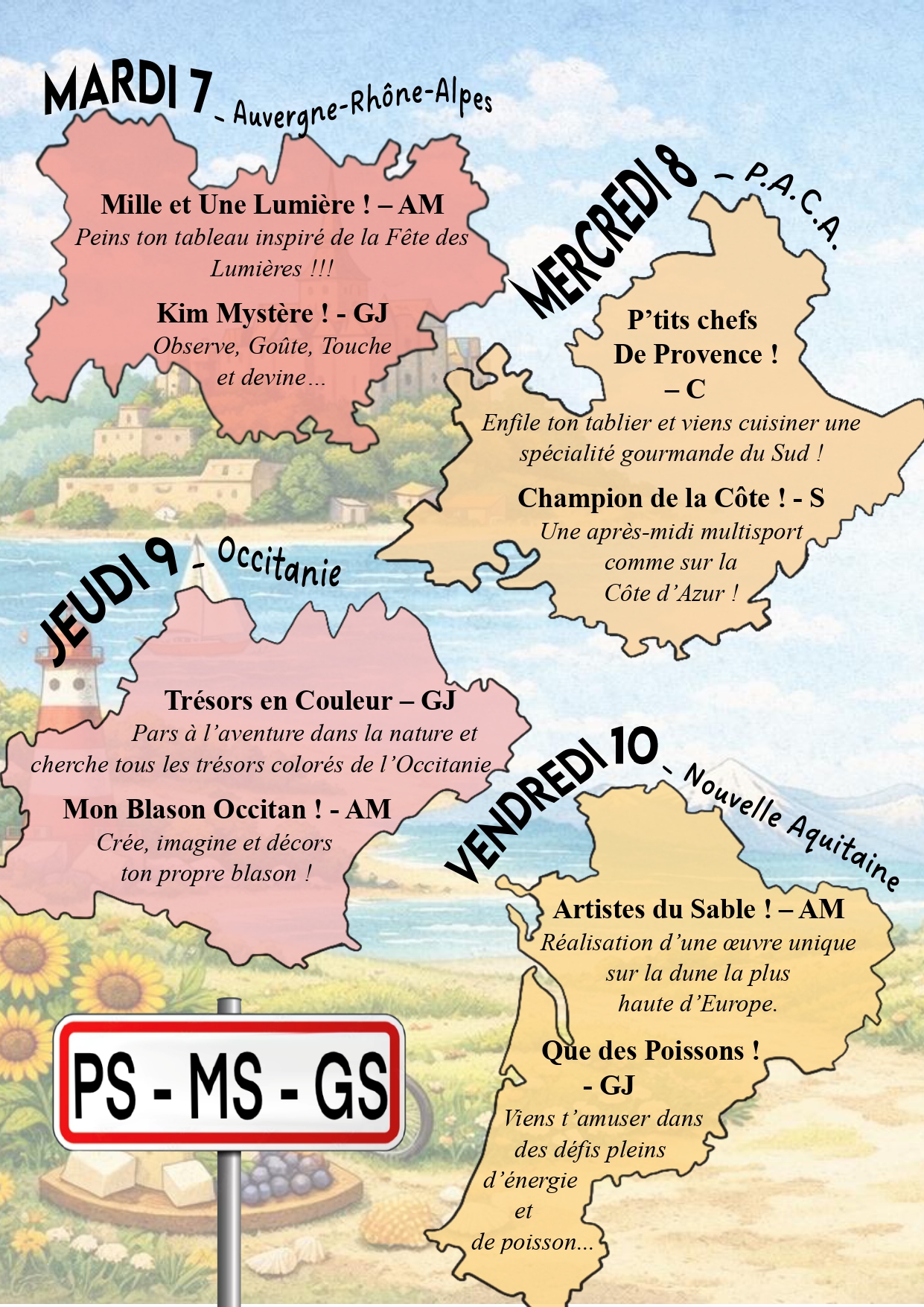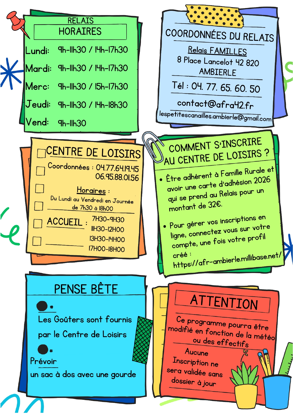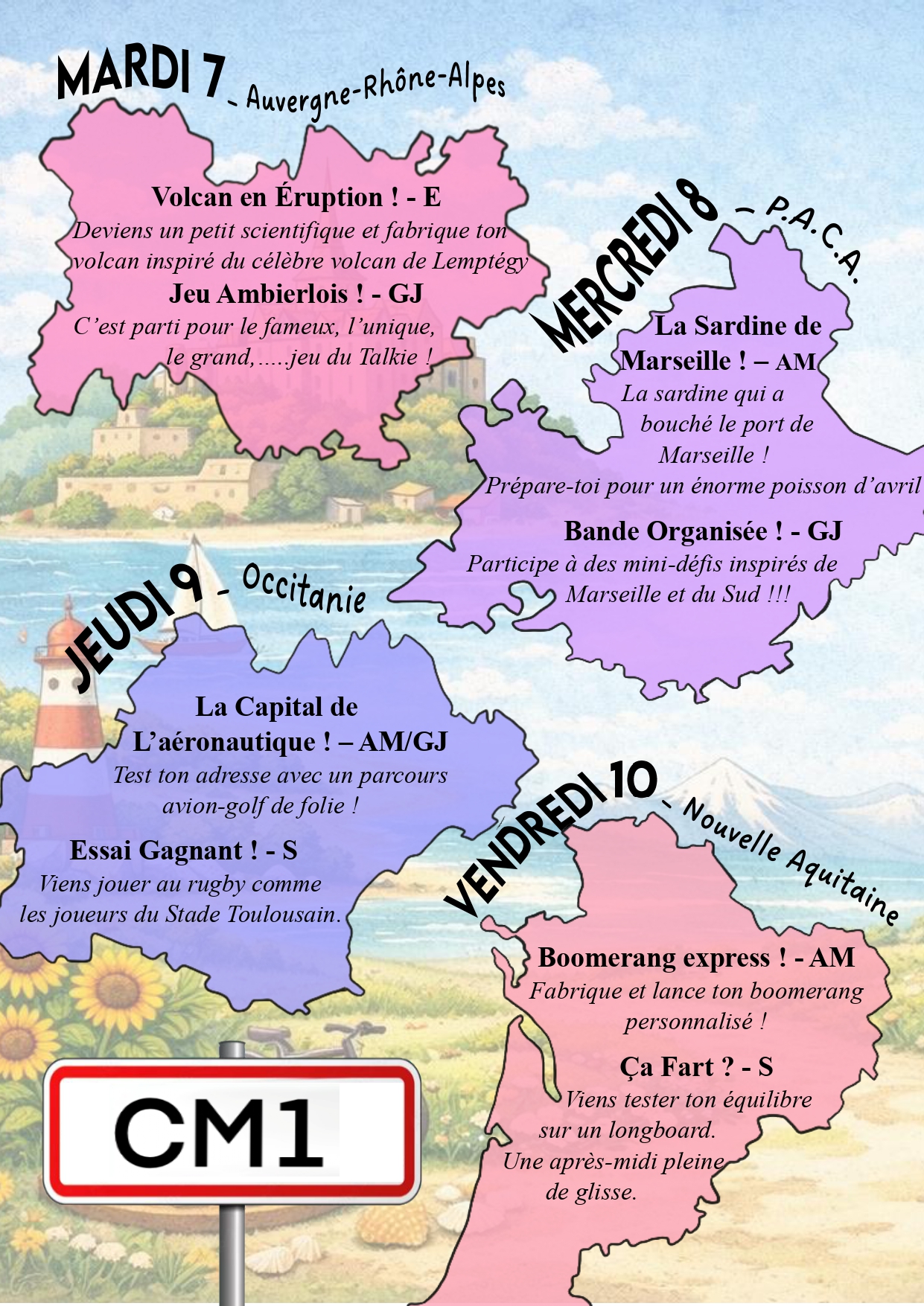 Prépare ton sac à dos on part en vadrouille !!! Le centre de loisirs de petites canailles vous emmènes faire un tour de la France et de ses régions !! Au programmes : découvertes des régions, des traditions culinaires, sportives et autres ... ⚠️Pour que votre inscription soit validée il faut que votre dossier soit à jour et que les vacances précédentes et les mercredis soient réglés ⚠️ Ouverture des inscriptions ce lundi 23 mars à partir de 19h sur afr-ambierle.millibase.net