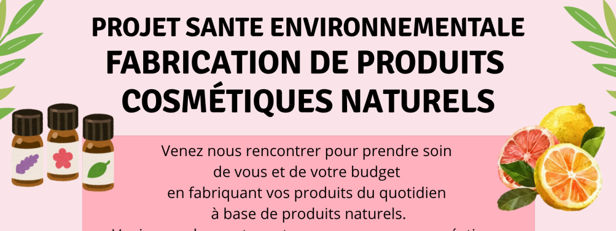 samedi 11/04/2026 : atelier de fabrication de cosmétiques naturels dans nos locaux de 14h à 16h avec Magali. Prix libre. Inscription 02 33 57 16 81 ou asso.moyon-tessy@famillesrurales.org