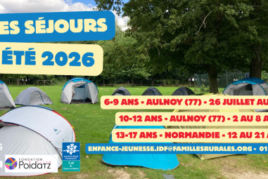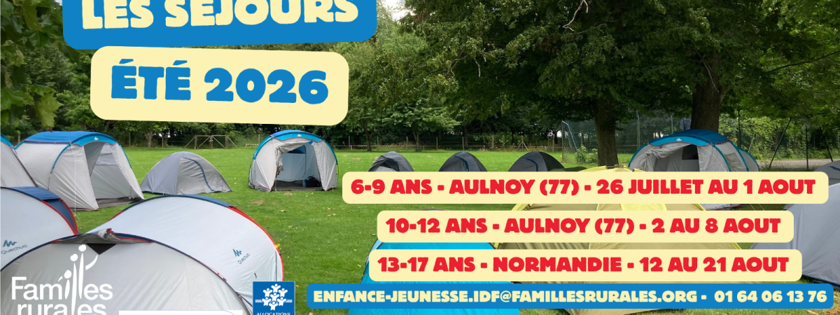 La Fédération Familles Rurales d'Île-de-France, organise pour l'été 2026, 3 séjours pour les enfants et les jeunes de son réseau. Afin de répondre à une demande des familles sur le territoire, ces trois séjours s'articuleront ainsi :