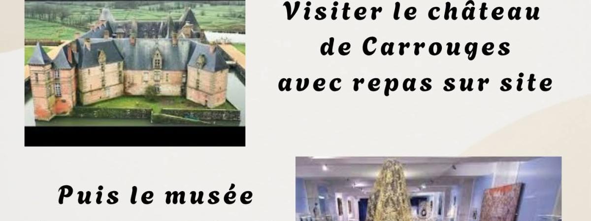 Voyage dans l'Orne le mardi 9 juin. Départ à 8h15 de Moyon, retour à 18h45. Visite du château de Carrouges avec repas sur site, puis visite du musée des beaux arts de la dentelle à Alençon. 35€ adhérents / 50€ non adhérents. Inscription au 02 33 57 16 81 ou asso.moyon-tessy@famillesrurales.org